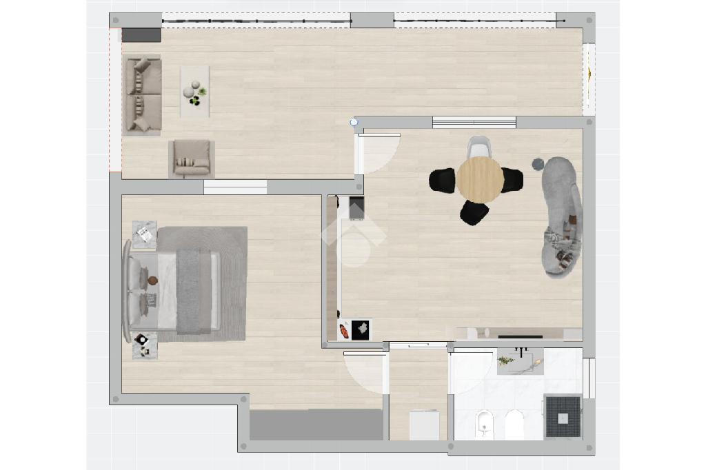All'interno è presente un luminoso soggiorno con angolo cottura, uno spazio aperto e funzionale che invita a condividere momenti di convivialità. Attraverso un disimpegno si raggiunge la spaziosa camera matrimoniale, che regala tutto il comfort necessario per una zona notte accogliente: qui è possibile collocare con facilità un grande armadio quattro stagioni, senza rinunciare alla sensazione di ampio respiro. Il bagno finestrato, dotato di vasca, diventa un piccolo rifugio personale, ideale dopo una giornata intensa.