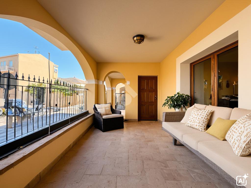 L'ingresso alla proprietà conduce direttamente a una veranda privata accogliendo chi ama vivere gli spazi all'aperto. Immagina di arricchirla con un prato verde, due eleganti divanetti e qualche pianta ornamentale: un perfetto salotto estivo dove leggere un libro, sorseggiare un caffè al mattino o trascorrere piacevoli serate in compagnia. La proprietà include inoltre una comoda cantina e un ampio posto auto coperto, garantendo praticità in ogni momento.
